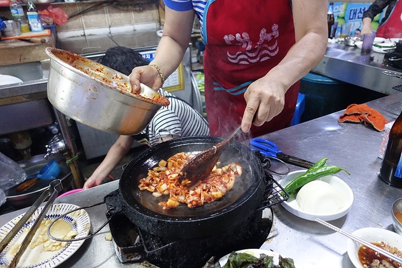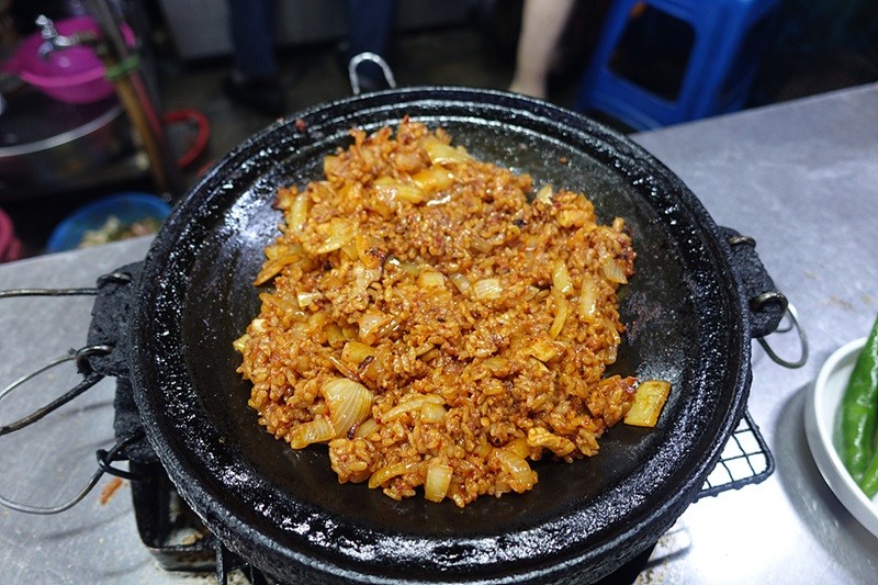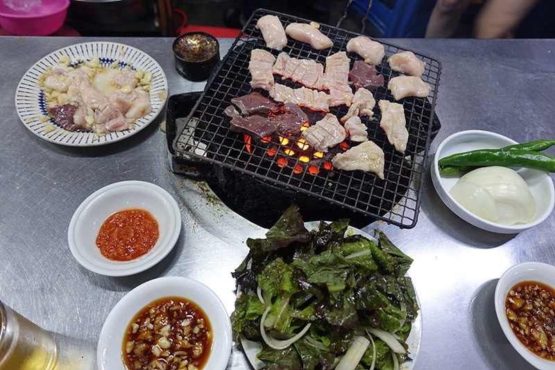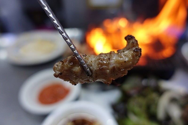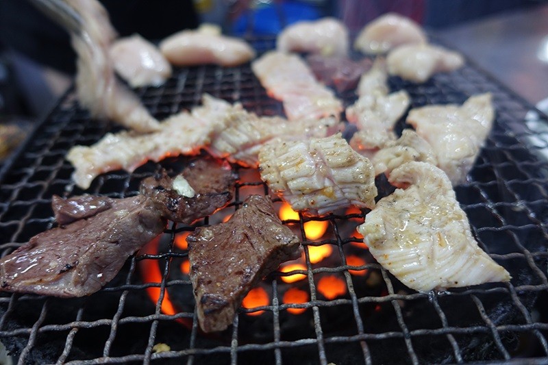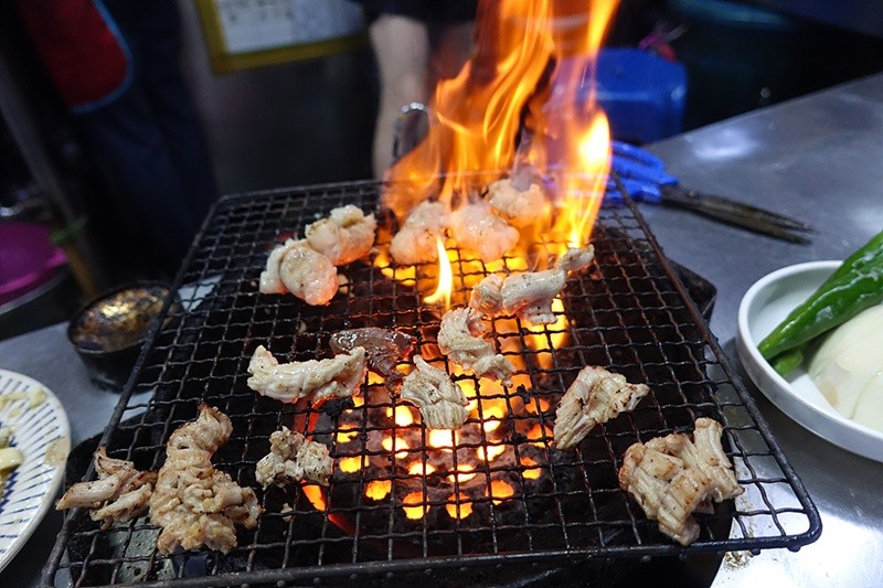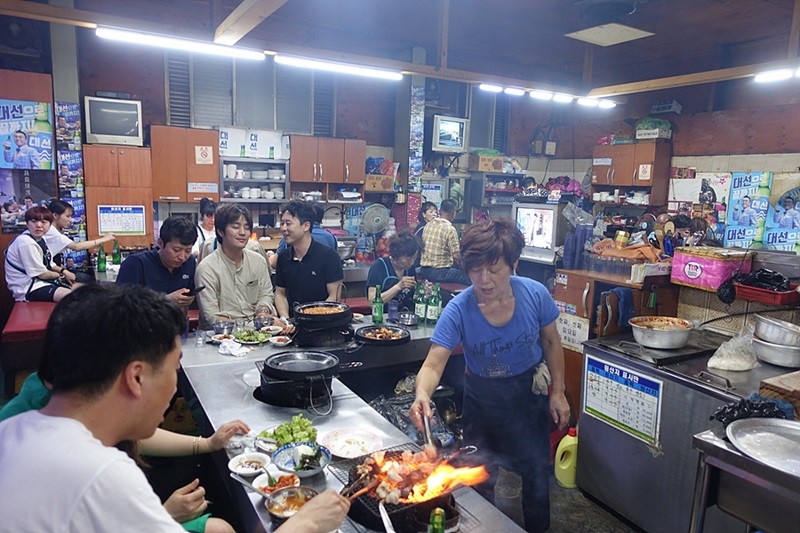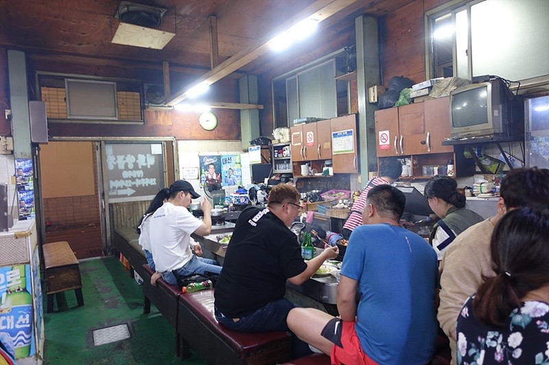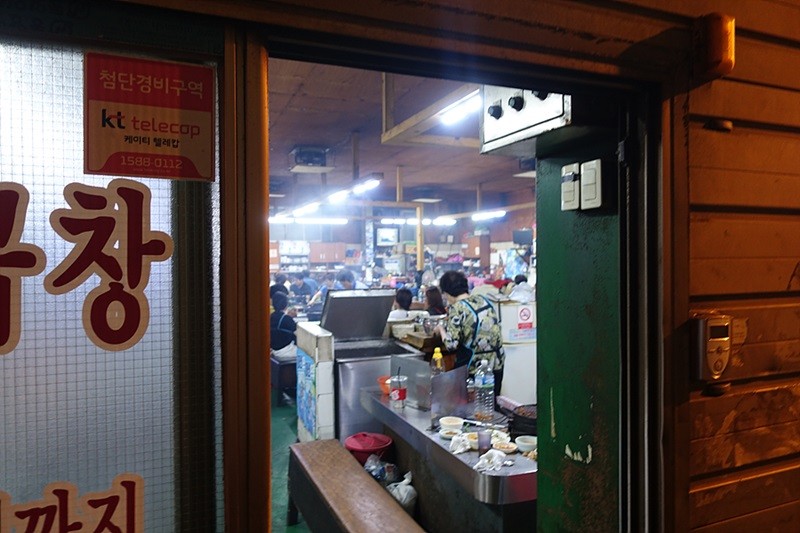 정문에 들어서면 시끌벅적한 사람들 소리와 실내를 자욱하게 매운 매캐한 연기에 압도당한다. 서울이라면 상상도 못 할 아비귀환. 밀폐된 공간 안 수 십 개의 화로에서 기름진 내장을 연탄에 굽고 있으니 화재 현장을 방불케 한다. 사람이 몰릴 시간이면 다닥다닥 좁게 앉아야 한다.