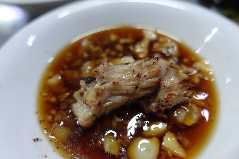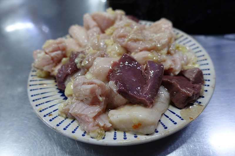 주인장은 각 진지 가운데 서서 연탄 화로를 진두지휘한다. 양곱창 모둠을 시키면 소의 위인 '양'과 창자인 '대창', 심장인 '염통'이 나온다. 주문하면 즉석에서 마늘을 빻아 재빠른 솜씨로 내장들을 양념에 버무린다. 알싸한 마늘향이 살아있다. 연탄불은 단순한 추억 팔이가 아니라 기능적인 역할도 있다. 강한 맛의 고깃덩이엔 강한 향이 필요하다. 내장에서 떨어진 기름과 양념이 연탄불을 만나면서 연기를 만들고 내장은 연기를 머금는다. 맛이 강하기에 마늘향 강한 새콤한 소스를 찍어 먹는다. 강약 조절 없이 '강강'으로 간다.