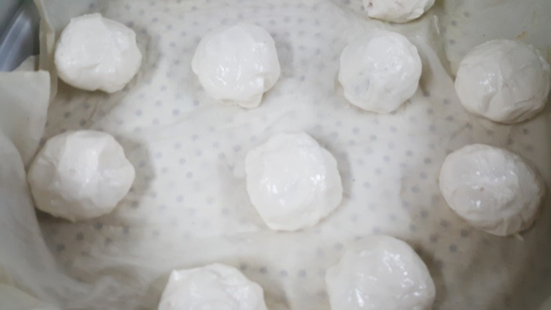 ❿ 발효가 다 된 반죽을 50g씩 나눠 앙금을 넣고 감싼다.