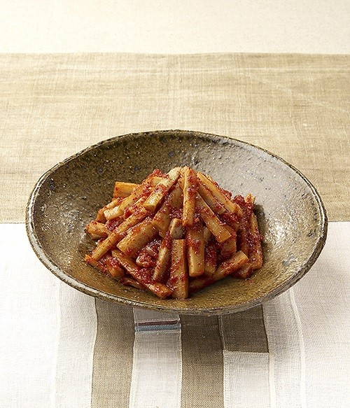 우엉김치는 향기가 독특하고 씹히는 감촉이 유별난 경상도 김치. 우엉은 섬유소가 질기고 딱딱해서 살짝 두드려 익힌 후에 담가야 한다.