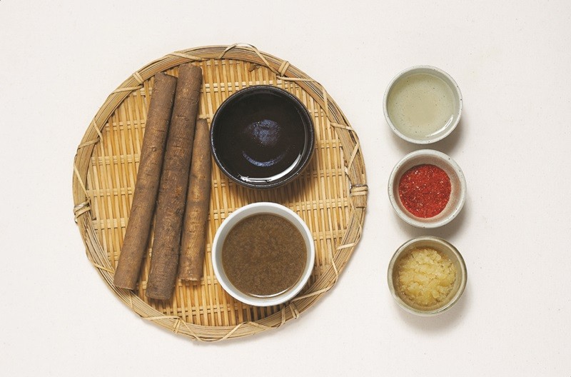 (양념) 고춧가루 1컵, 다진 마늘 2/3컵, 다진 생강 3큰술, 설탕 1큰술