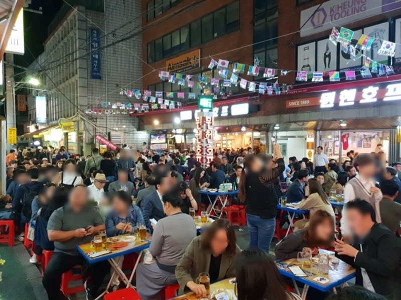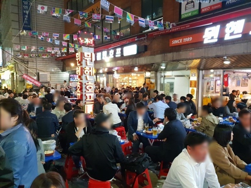 봄, 가을 저녁 을지로 맥주 골목의 풍경은 그야말로 장관이다. “거기 옛날부터 유명하지 않았나”며 대수롭지 않게 여기는 이가 있다면, 얘기로만 듣는 것과 실제로 가보는 것은 완전히 다르다고 얘기해주고 싶다. 수천 명의 인파가 만들어낸 거대한 축제. 특히 최근 몇 년 사이 중구청에서 이 구역에 옥외 영업을 공식적으로 허가해주면서 원래도 흥청거렸던 술판이 더욱 큰 술판이 되었고 이젠 하나의 문화로 자리 잡아가고 있다. ‘민’에서 올라온 필요를 ‘관’이 받아준 몇 안 되는 훌륭한 사례다.
