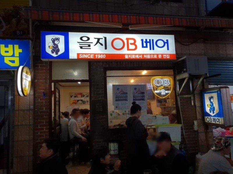 이 골목에선 ‘만선호프’가 가장 유명하고 사람도 많지만 원조 집은 따로 있다. <을지OB베어>는 1980년부터 이 골목에서 처음으로 맥주와 노가리를 내기 시작했다. 둘러보면 간판도 옛날 감성이 살아있어 가장 멋들어졌다. 막상 가보면 가게는 매우 작지만 오히려 옛 모습 그대로인 듯한 느낌이 들어 원조라는 말이 와 닫는다. 이 열 평 남짓 작은 공간이 사십 년의 세월을 겪으면서 이렇게 큰 규모의 근현대 문화유산이 되었다.