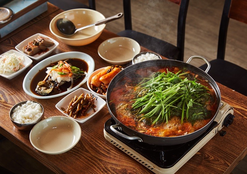 참게를 넣고 끓인 매운탕은 구수하면서도