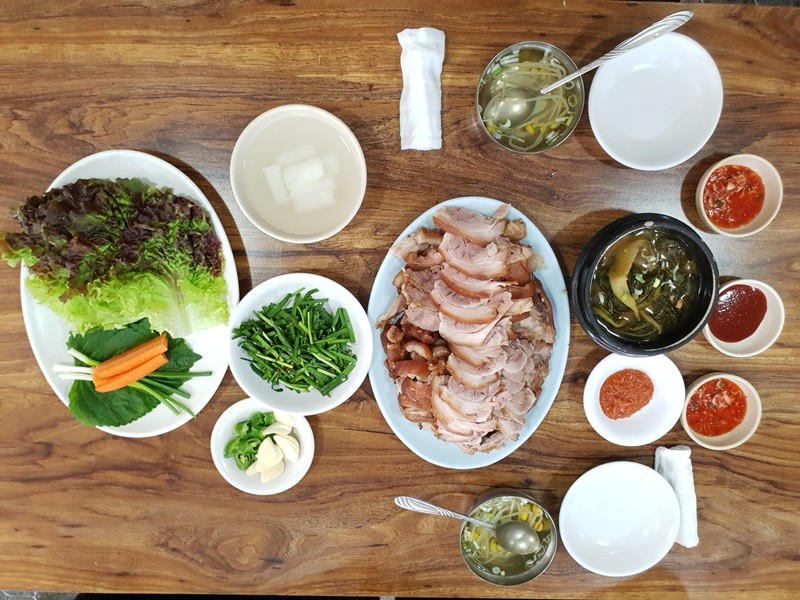족발이나 보쌈을 주문하면 구수한 시골 된장국과 한 사람당 한 그릇씩 나오는 콩나물국, 신선한 부추의 향과 참기름의 고소함이 어우러져 중독성이 있는 부추무침 등이 곁들여진다. 하나같이 군침을 돌게 하는 음식들이다.