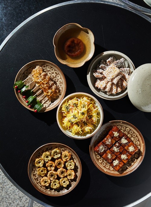 백 년 전 설날, 양반가에서 손님을 맞을 때 내온 다과들을 추정해서 만들어보았다. 7가지의 떡과 6가지의 과자, 2가지 음료에 대한 조리법이 기록되어 있는데, 이걸 바탕으로 박고지정과, 산자, 화병, 약과, 꽃매작과, 수정과 등 6가지 음식을 준비했다. 조청에 졸인 박고지에 깨를 무쳐 만든 박고지정과는 쫀득쫀득한 맛이 일품이다. 산자는 찹쌀이 아닌 밀가루로 만들어 바삭바삭하다. 옛날엔 찹쌀보다 밀가루가 더 귀했고, 혜경궁 홍씨 수라에도 밀가루 산자를 만들어 올렸다는 기록이 있다. 수정과는 꿀물에 곶감을 하룻밤 정도 담근 것이다. 곶감의 단맛이 자연스럽게 우러나온다. 우리가 흔히 아는 계피나 생강을 넣고 끓인 수정과와는 다른 방식이다.