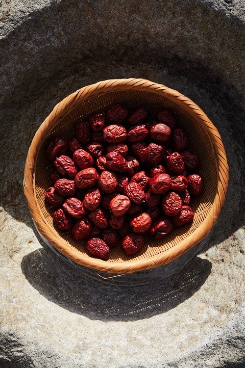 설날 차례상 왼쪽 자리를 꼭 차지하는 대추. ‘대추 보고 그냥 지나치면 삼 년 늙는다’는 옛말이 있을 정도로 대추는 불로과不老果로서 오랜 사랑을 받아왔다. 특히 충청북도 보은군의 대추를 으뜸으로 치는데, 허균이 쓴 음식 품평서인 「도문대작」에 ‘대추는 보은에서 생산된 것이 제일 좋고 크며 색깔은 붉고 맛이 달다’고 기록돼있다. 현재 보은에서는 1970년대에 개량한 품종인 ‘복조’가 주를 이루는데 보은 대추의 명성은 여전하다. 길이가 어른 손가락 두 마디만 한 데다 통통하고, 사과보다 달콤하다. 실제로 보은 대추의 평균 당도는 30브릭스BRIX로 11-15브릭스인 사과보다 두 배 이상 달다.