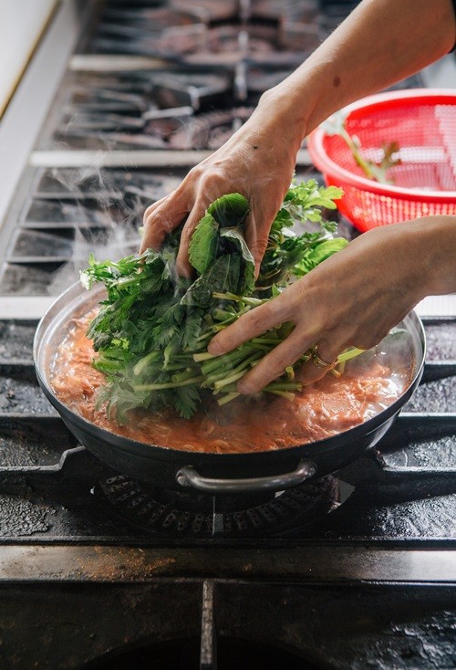 새우 자체에서 충분히 깊은 맛이 우러나기 때문에 따로 육수를 낼 필요가 없다. 고추장과 고춧가루를 풀고 무와 대파를 넉넉히 넣고 끓인다. 일반 고추장은 들큼한 맛이 날 수 있어 매운탕에 적합한 고추장을 따로 사용한다. 손님상에 내가기 직전에 새뱅이를 듬뿍 넣고, 깻잎, 쑥갓, 미나리, 팽이버섯 등의 채소류도 푸짐하게 얹는다. 다른 민물 생선 매운탕과는 달리 맛이 금방 우러나는 새뱅이는 상에 내기 직전에 넣어 한소끔 끓여 내 가면 된다고.