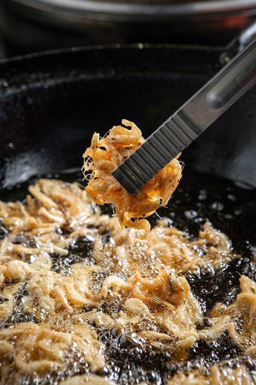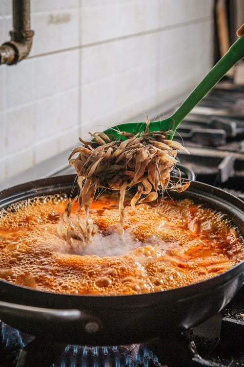 보글보글 끓는 동안 민물 새우의 맛이 은은하게 퍼지고, 감칠맛이 깊어지면서 얼큰한 국물에 달곰한 맛이 배어난다. 깨물면 톡톡 터지는 새뱅이와 부드러운 무의 식감이 조화롭다. 여기에 쫄깃한 감자수제비와 부드러운 소면을 곁들이면 든든한 한 끼가 완성된다. 일반 소면과 달리 소다가 들어 있지 않아 속이 편한 이곳 소면은 단골 제면소에서 따로 구입해오며 밥과 라면 사리를 원하는 만큼 추가할 수 있다. 잔 새우를 뭉텅뭉텅 튀겨낸 새뱅이튀김은 대하 튀김과는 또 다른 매력으로 저도 모르게 젓가락이 가는 별미다. 맑은 물이 내주는 신선한 자연의 맛, 조금은 색다른 민물의 맛으로 겨울에 남다른 즐거움을 얹는다.
