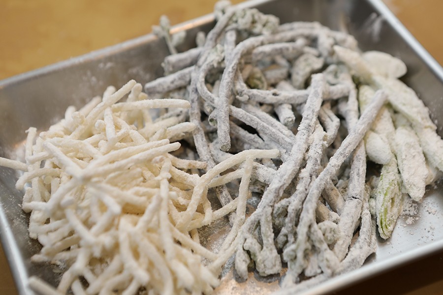 ④ 숙주는 거두절미하고 대파는 4~5cm 길이로 자른 다음 소금물에 적신 후 밀가루를 충분히 묻혀둔다.