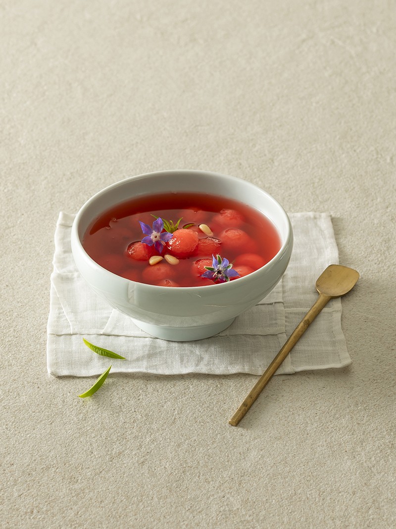 그대로 먹어도 맛있는 수박이지만 더 시원하게 먹고 싶을 때는 수박화채만한 것이 없다. 보기 좋은 모양으로 퍼낸 과육에 설탕이나 꿀, 다른 과일, 얼음 등을 기호에 맞게 넣어 만든다. 단 얼음이 녹으면서 맛이 싱거워지는 것이 걱정된다면 수박주스 얼음을 만들어 넣어주는 센스를 발휘해보자. 사각사각 수박을 베어 무는 소리에 주변을 감싸고 있던 더위도 한풀 꺾인다.