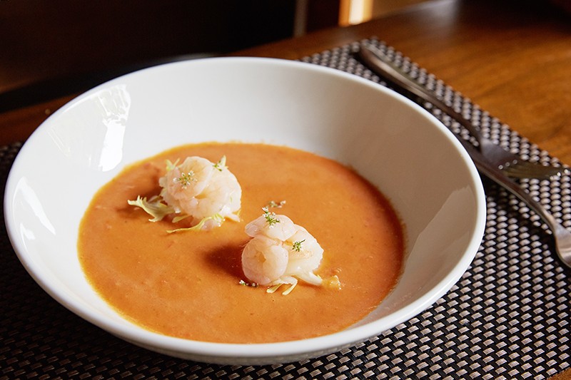 <해산물 밀푀유를 곁들인 대저토마토 가스파초>