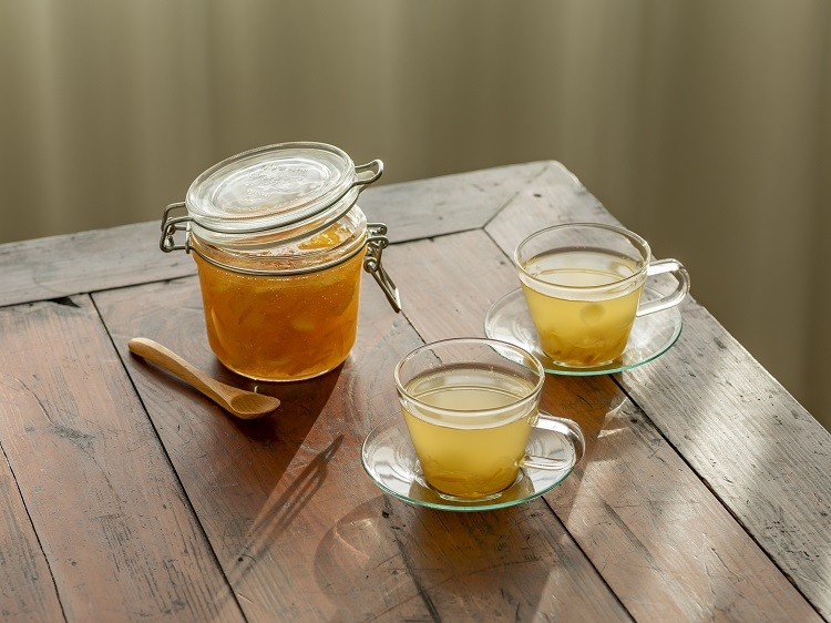 감기 예방에 탁월한 유자와 생강의 만남은 겨울철 최고의 보양 차로 손꼽힌다. 소금물에 유자를 씻어 물기를 닦고, 껍질을 벗겨 과육을 분리한다. 껍질을 벗긴 생강을 강판에 갈아 즙을 내고, 유자 껍질은 썰어서 설탕과 함께 믹서기에 간 다음, 유자 과육과 설탕을 갈아 병에 넣고 섞는다. 1~2일 후 한 숟가락씩 떠서 뜨거운 물에 우려내 먹는다.