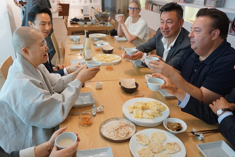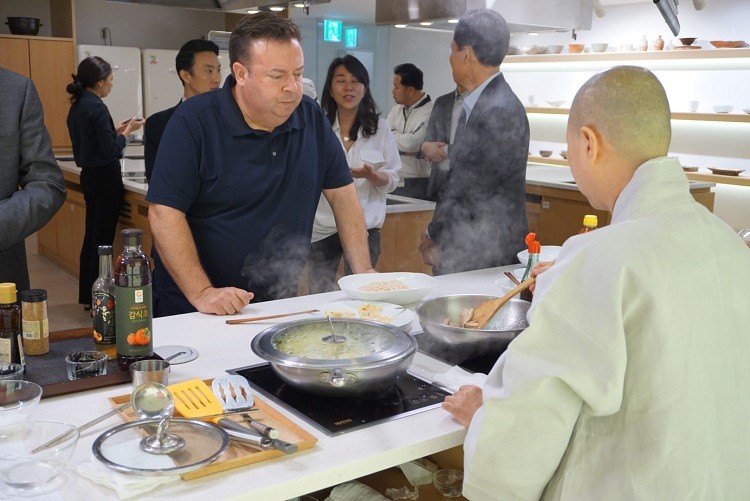 이처럼 '한국의 맛'에 매료된 길모어 셰프와 함께한 이 날 행사는 선재 이사장과의 인사, 사진촬영, 다과와 환담으로 시작되었다. 한식의 개념과 특징, 시연 메뉴 및 식재료를 소개한 선재 이사장은 곧바로 요리 시연에 들어갔다. 이날 선보인 음식은 치유의 기능이 있는 가을 식재료를 된장·간장·고추장으로 조리해 완성한 음식으로 간장 우엉·연근조림, 사과고추장을 곁들인 무배추전, 된장 배추제피찜이다.