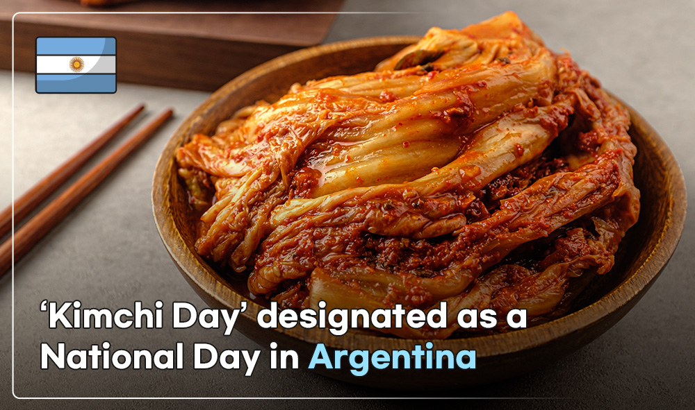 Argentina designated 'Kimchi Day (November 22)' as a national day last July. According to the Korea Agro-Fisheries & Food Trade Corporation, Argentina became the first country to officially recognize 'Kimchi Day' as a national day. This news is particularly astounding considering the physical distance and connection with South Korea. The purpose of designating Kimchi Day has been officially announced as "valuing the cultural and social contributions of Korean immigrants living in the Argentine Republic and strengthening the friendly relationship between Argentina and the Republic of Korea."