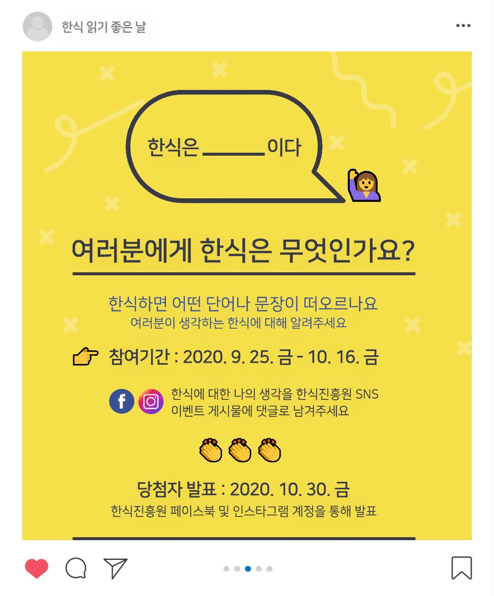 한식진흥원 페이스북과 인스타그램 이벤트 게시물에