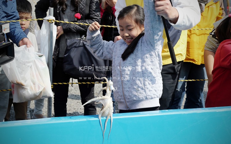In the festival of camellia flower and jukkumi held at Maryang port of Seocheon, not only the food marketplace with the jukkumi dish as the main but also diverse programs such as surprise auction, kids' fishing experience of jukkumi, etc. are in progress. Appreciation of the harmony of widely-spread Seocheon sea under the gorgeous spring weather and camellia flowers boasting red appearance along with jukkumi is another pleasure.