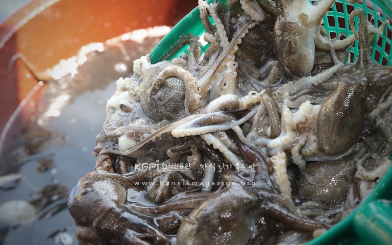 Around the time when camellia flowers blossom at the northern limit line for camellia, jukkumi(Webfoot Octpus) starts being caught in the Yellow Sea. Jukkumi produced in the clean waters of Yellow Sea with appropriate mixing of mud flat and sand is famous for its good taste. In particular the female entering in the seashell for laying roe has a solid body to be called the delicacy of spring season. Since the jukkumi in season runs out at the production place, you can taste jukkumi of the best quality by visiting Seocheon, Boryeong, Taean of Chungcheong-do at this time.