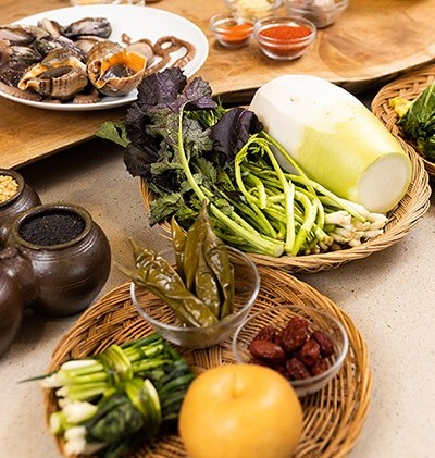 Kimchi is definitely the type of food that Koreans eat the most. It began as a dish called “chimchae” and developed into today’s “kimchi” through various changes over the years. Of course, kimchi is still “evolving.” Kimchi is created by adding time to nature in harmony. Grand Master Lee Hayeon, the president of the Kimchi Association of Korea, was designated as the Korean Food Grand Master. Her “Seafood Seokbakji” is prepared by mixing top shells, small octopus, abalone, etc. in kimchi.