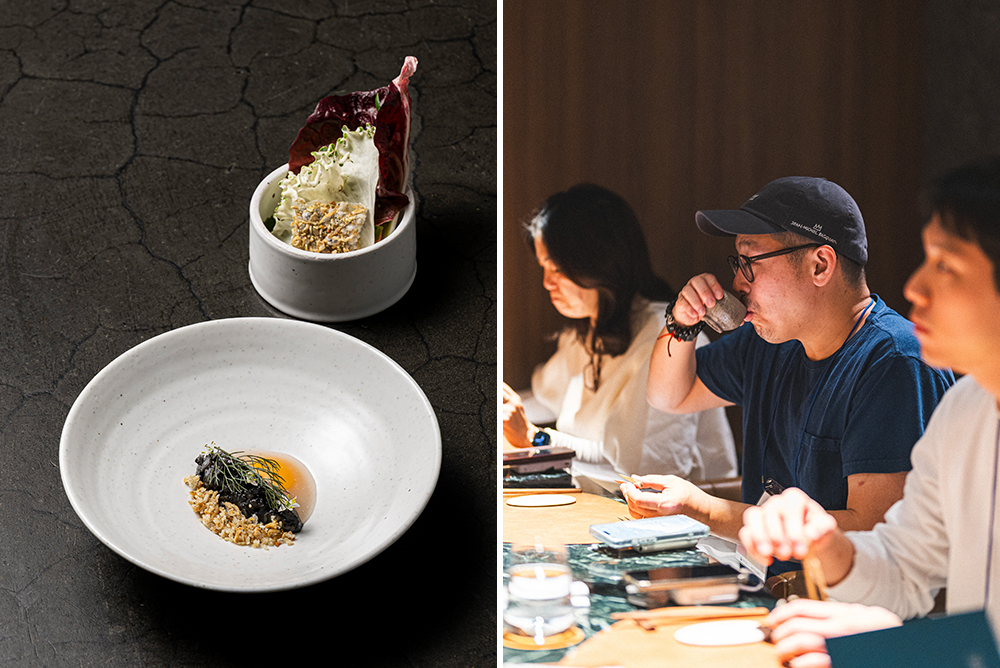 최근에는 ‘한 입의 미학’을 담은 메뉴가 사랑받고 있습니다. 구운 증편 위에 떡갈비와 트러플 김치 소스를 얹은 요리, 직접 만든 라즈베리 고추장에 버무린 소고기, 훈연한 홍합과 캐비아를 곁들인 육회 타르트가 대표적이죠. 지난 시즌에 큰 사랑을 받은 은대구조림의 뒤를 이어 지금은 쌈장 XO 소스와 깻잎 소스를 감태부각과 함께 비벼 먹는 나물밥, 그리고 오랜 시간 저온으로 익혀 부드러운 식감을 극대화한 우엉 소스 갈비도 미식가들 사이에서 필수 주문 메뉴로 꼽힙니다.