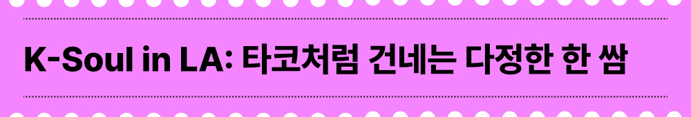 문화의 벽은 관점을 살짝 바꾸는 것만으로도 쉽게 허물어지곤 합니다. 저는 LA 현지 고객에게 쌈을 대접할 때, 이곳의 솔 푸드인 타코를 즐기는 방식과 같다고 설명해드려요. ‘한국식 타코’라는 직관적 비유 하나만으로도 고객은 금세 친숙함을 느끼며 즐겁게 쌈을 싸기 시작하죠. 눈으로도 즐길 수 있도록 쌈 채소와 소스, 정갈한 곁들이 구성을 통해 완성도를 높입니다. 이처럼 익숙한 문화를 은유적으로 제안하는 발상의 전환이 한식을 더 쉽고 깊이 있게 경험하도록 만들지요.