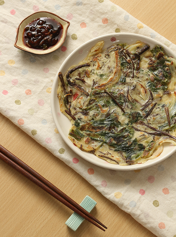 들어가는 재료가 무엇이든 맛있는 부침개 요리! 나물을 종류별로 듬뿍 넣어 각각의 맛과 식감을 살려, 파전과 부추전에 절대 지지 않는 새로운 맛의 부침개를 완성해 보자.
