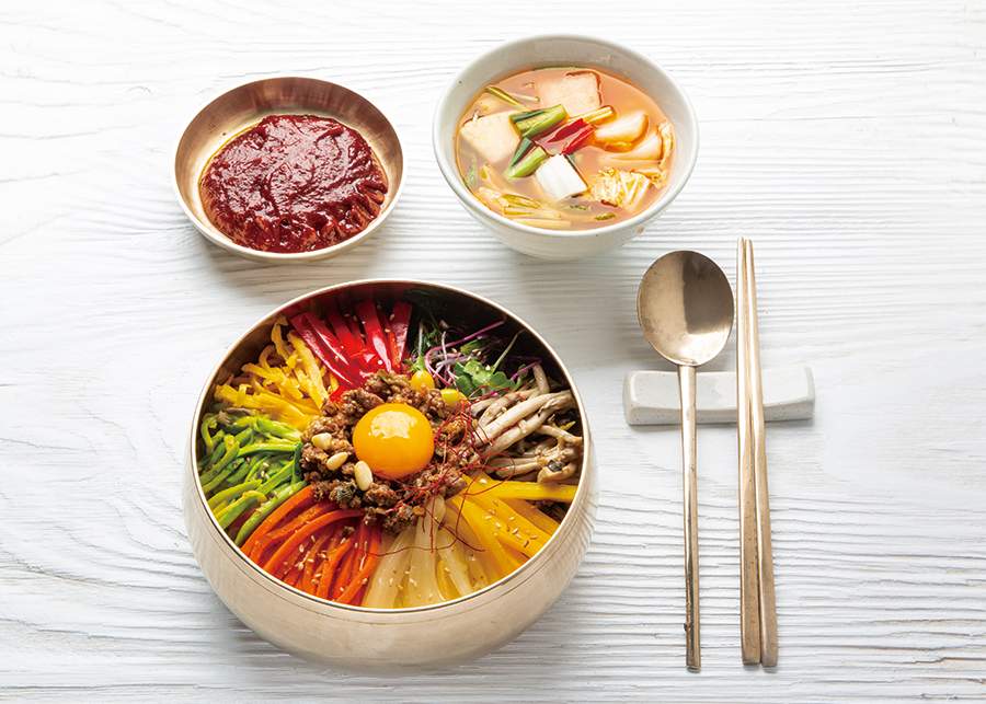 This one-bowl recipe, in which the rice is mixed with the dishes made from different recipes, and then mixed together, captures the characteristics of bibimbap, the harmony of different flavors.
