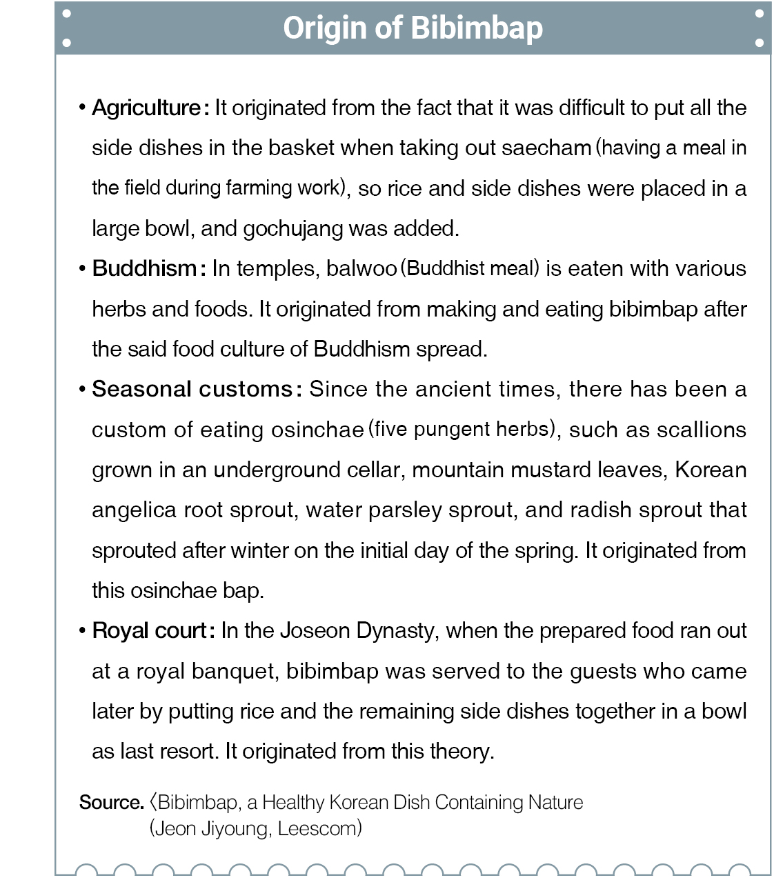 Materials and source. <Bibimbap, a Healthy Korean Dish Containing Nature> (Jeon Jiyoung, Leescom)