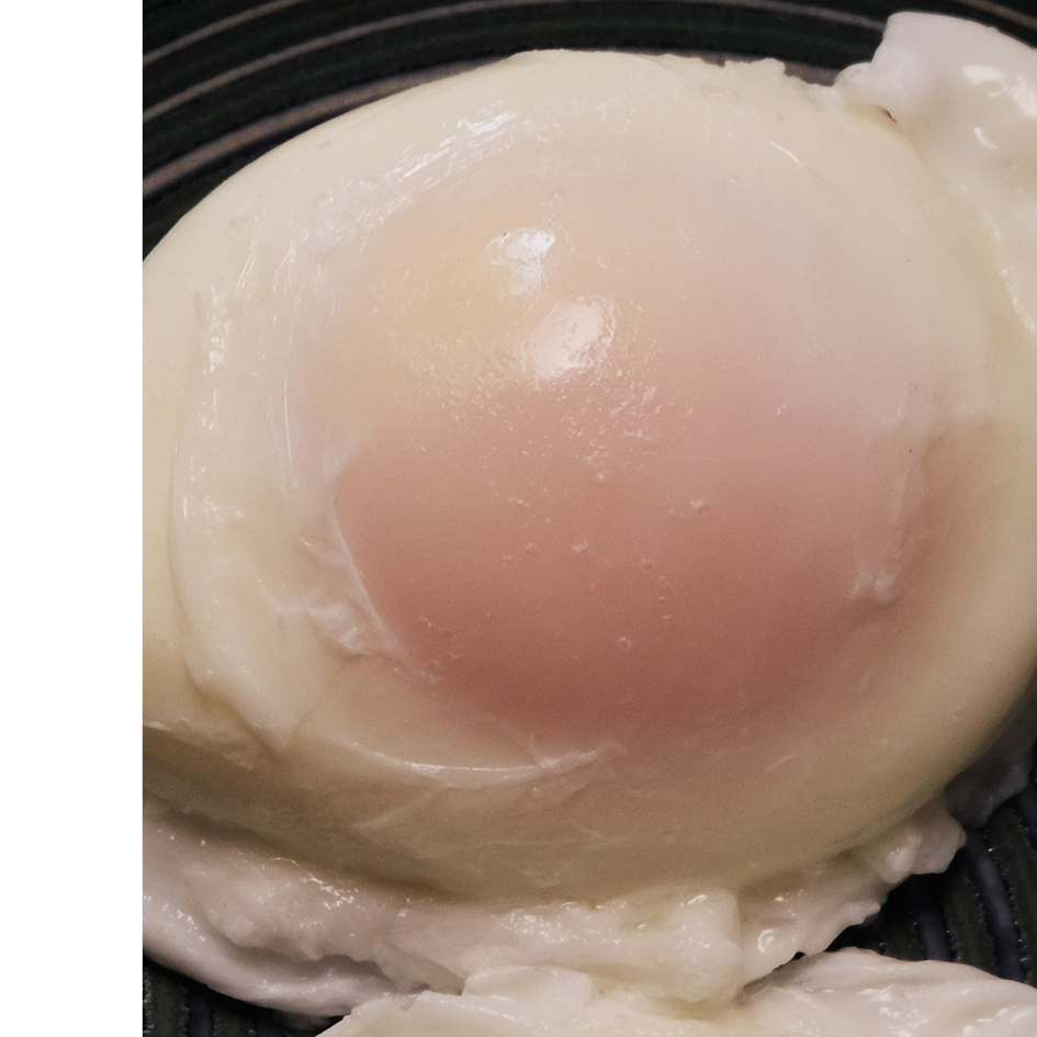 ④ Carefully pour the boiling water over the yolk with a spoon so that the egg whites cover it.
