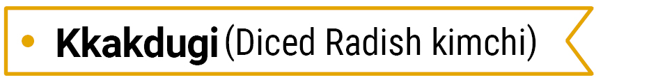 There are side dishes that always accompany gukbap: kimchi and kkakdugi(diced radish kimchi).