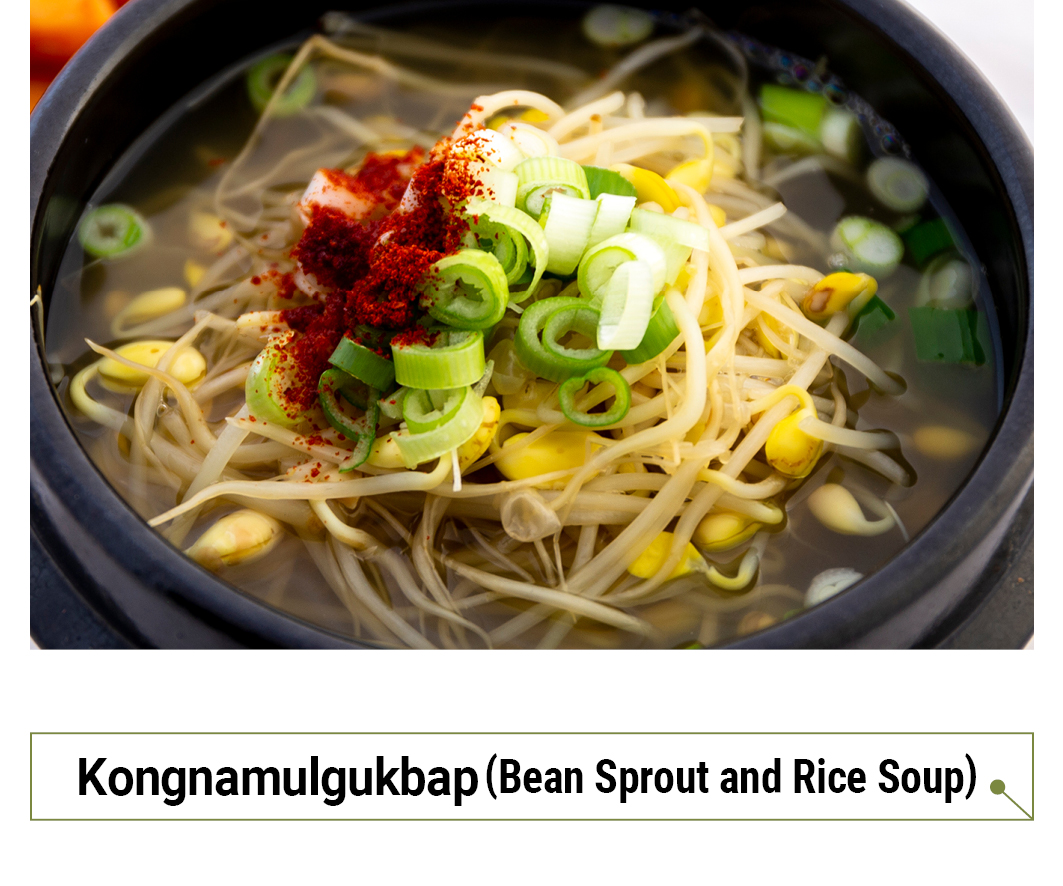 ⑥ Put the rice in a bowl, top it with the boiled bean sprouts, green onion, squid, cheongyang chili pepper, kimchi, and red chili powder, and pour the hot broth to serve.