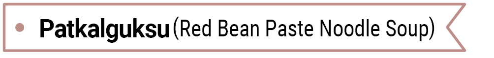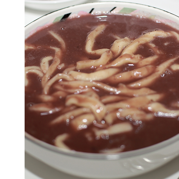 Patkalguksu, one of the meals to relieve hunger in the days when food was scarce, has now become a nutritious food or a delicacy. In the past, it was mainly eaten in Gangwon-do, Jeolla-do, and Gyeongnam-do. It is also called patguksu in Gangwon-do.