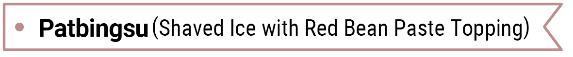 After the Japanese colonial period, it became common to eat bingsu with sweet red beans on top, and more diverse bingsu, such as fruit bingsu, coffee bingsu, and green tea bingsu, have recently appeared.
