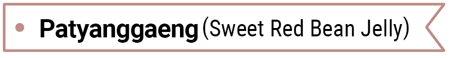 Patyanggaeng is a popular snack for children because of its sweet taste. Yanggaeng, which reminds us of our childhood memories, makes an excellent gift, and is often used as an emergency food when traveling. It is made with red beans as the base, but recently, various ingredients, such as fruits, are also added.