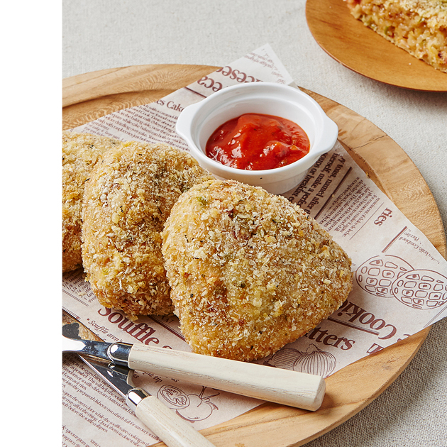 다양한 식감이 한데 어우러져 씹는 맛을 즐길 수 있고, 동그란 모양과 바삭함이 느껴지는 튀김옷 덕분에 편식이 심한 아이들에게도 쉽게 먹일 수 있다.