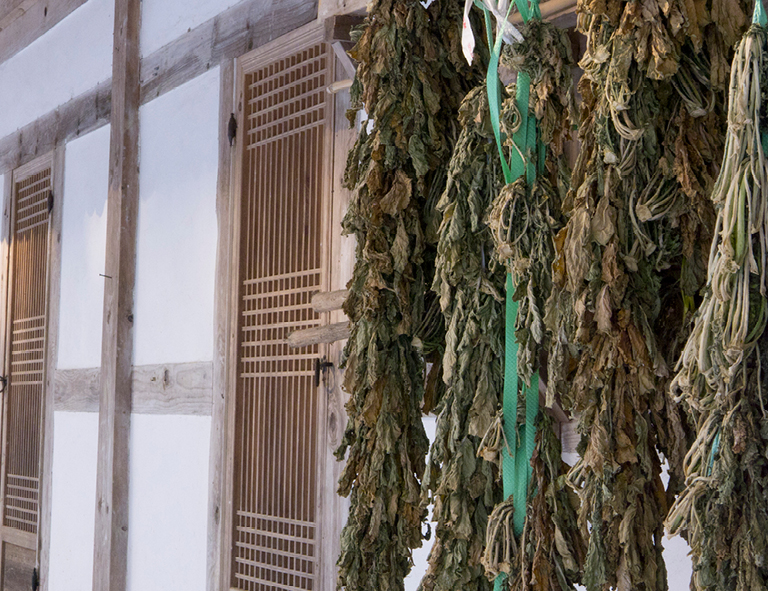 Long storage period and high utilization were the greatest strengths of mugeunnamul. When dried vegetables were boiled and stir-fried in oil or boiled in a broth over low heat, people could enjoy the taste and texture that were different from raw vegetables. Fresh vegetables that are from the field seem to be better for the body, but because they are fermented during the drying process, dried vegetables are richer in nutrients. Let’s give an example of dried radish leaves, which is called the “tonic on the winter table.” The raw radish leaves contain a large amount of iron and calcium, and are also rich in vitamin A that has anti-cancer effects and is good for eye health. When it is dried, these components increase even more. Dietary fiber, which helps manage weight and prevent constipation with a feeling of fullness, also increases three to four times as it dries. However, if dried radish leaves are cooked at high temperatures, the nutrients are easily destroyed, so it is better to lightly blanch them in salt water to reduce vitamin loss. When golden oak mushrooms or radish slices are dried in the sun, vitamin D increases. If you eat bracken after drying it, toxicity disappears, and you can eat it without any worries. Moreover, mugeunnamul and raw vegetables differ in taste. When namul is dried, it loses moisture, but its sweetness becomes stronger as its nuttiness is doubled. Moreover, as the volume is reduced, a larger quantity of vegetables can be consumed, which is an advantage.