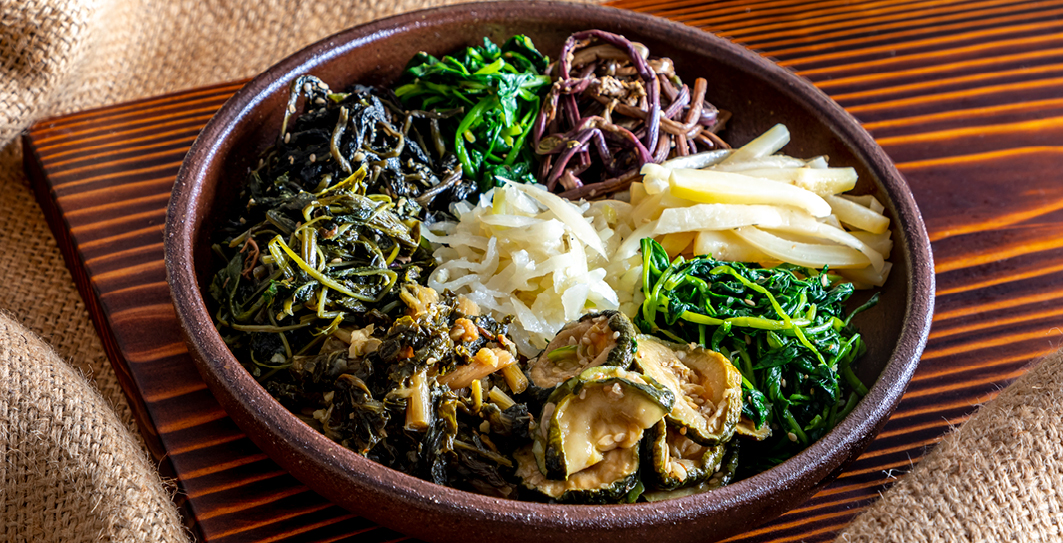 Muguennamul(seasoned vegetables dish made with the vegetables dried in the previous year) is a side dish that is paired with ogokbap on the first full moon of the year. It is called mugeunnamul(dried vegetables) because the dish is made from various vegetables, picked and dried in the spring and autumn of the previous year and stored during winter, and is soaked and steamed on the first full moon of the new year. In Chinese characters, it is called “jinchae.” They are mainly young zucchini, eggplant, mushrooms, bracken, bellflower, radish leaf, castor leaf, and taro stem. Mugeunnamul is a type of food for good health and is eaten to pass the summer heat safely. It is recorded in the <Dongguk Sesigi> that “If you eat mugeunnamul, you will not feel the heat of the coming summer.” In the winter, when fresh vegetables were scarce, dried vegetables were valuable ingredients that supplied nutrients. Their excellent storage and high utilization features are considered to be their great advantages.You can enjoy a nutty and earthy taste that is different from raw vegetables by soaking dried vegetables well in water and then boiling them, and frying them in oil or pouring broth and boiling them. The dried vegetables are also a type of dish that provide nutrients in cold weather, and they taste the best around the first full moon of the year. This is because although it is spring in terms of the season, the cold weather is not yet gone, so it is a time when seasonal dishes with some calories are needed. The types of aged herbs vary, depending on the region. In mountainous areas such as Gangwon-do, chwinamul(aster leaf) is eaten after drying, and in areas near the sea, seaweeds such as gulfweed are used.