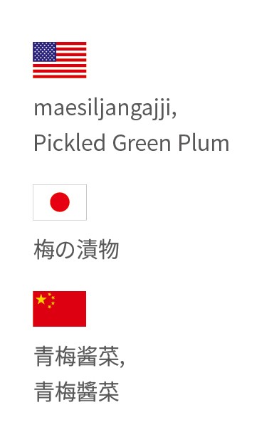 Pitted Japanese apricots alternately layered with sugar and sealed in a container for fermentation. Their sweet and sour taste helps stimulate appetite and promotes digestion.