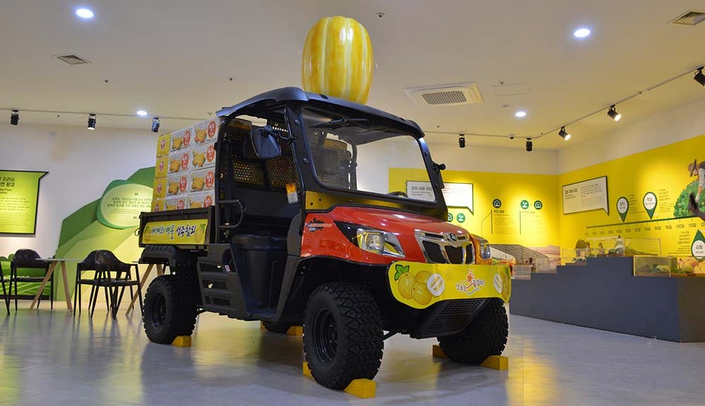 한편에서는 벽면을 이용한 스크린 참외 터치 게임에 빠진 아이들이 신났다. 성주 참외의 로고가 새겨진 참외 상자를 가득 실은 미니 참외 트럭도 아이들의 호기심을 자극한다. 입구 우측에는 아이들을 위한 실내 놀이터와 미니도서관, 와글와글 놀이방, 포토존도 마련되어 이름 그대로 참외랑 아이랑 함께하는 놀이공간으로 꾸며져 있다.