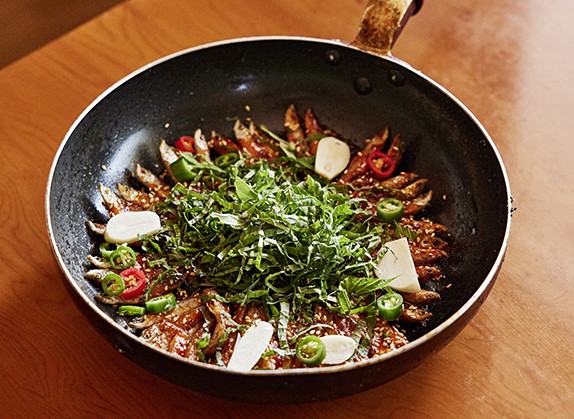 If you need a little more to be satisfied after having had fish noodles or doribaengbaeng, try ordering a side of whole fried fish. The clear, mild flavors of the small freshwater fish will be refreshing for both your body and mind.