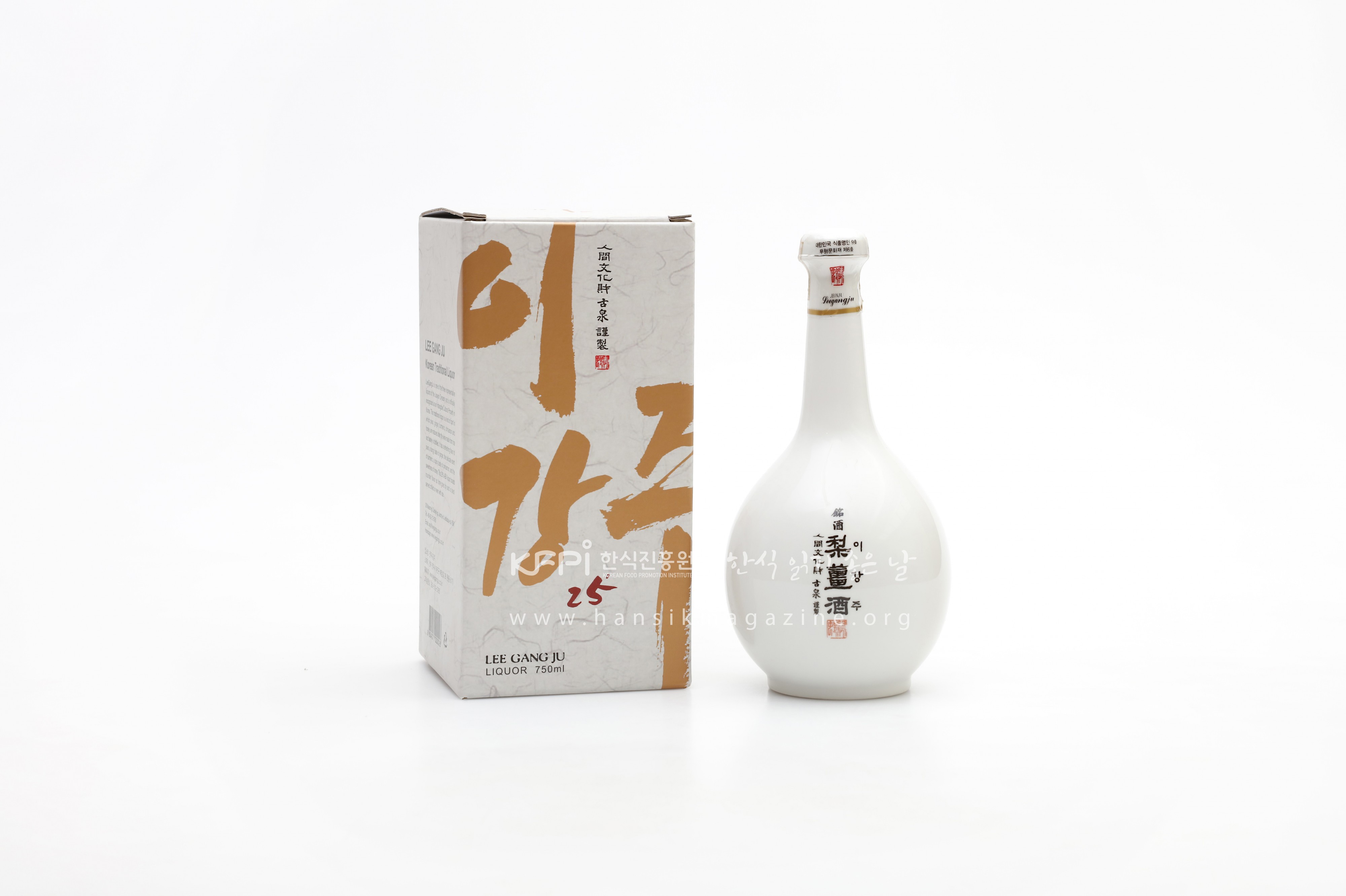 Igangju of Joseon era was not diluted Soju with water mixed with ethanol, and the alcohol proof estimated to be close to 38 degrees. While the alcohol content of publicly universalized Igangju has been lowered to 25%, it is not a liquor to be slighted still. However, Igangju is a liquor basically produced by undergoing the process of mixing diversified ingredients with distilled Soju, and Igangju with a lowered alcohol proof by dilution is also available, allowing enjoyment by the people who do not drink liquors well.
