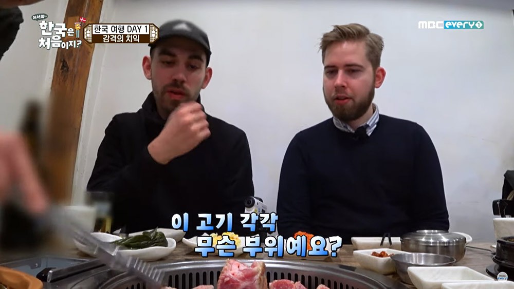 The food that foreign visitors to Korea seek out the most is, by far, what is now known globally as “Korean barbeque.” The point of greatest interest is the use of chopsticks to eat pieces of meat that were grilled at the table—a method of cooking that is quite different from those of other countries (e.g. cutting meat into thick single pieces for steak, use of a grill to barbeque). Korean viewers are amused by non-Koreans’ fascination with the grill, which is small enough to be built into the table, as well as Western tourists’ (who come from countries where beef is the primary meat) interest in the grilling and on-the-spot consumption of pork, as can be seen in multiple national teams poring over the menu at restaurants because they have little knowledge of pork cuts (e.g. samgyeopsal (grilled pork belly), neck, and skirt). For non-Koreans, the average Korean’s deep knowledge of the differences in taste among the varying thicknesses of samgyeopsal and how to grill raw samgyeopsal as opposed to frozen thin samgyeopsal is nothing short of awe-inspiring.