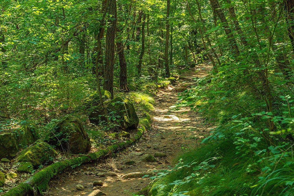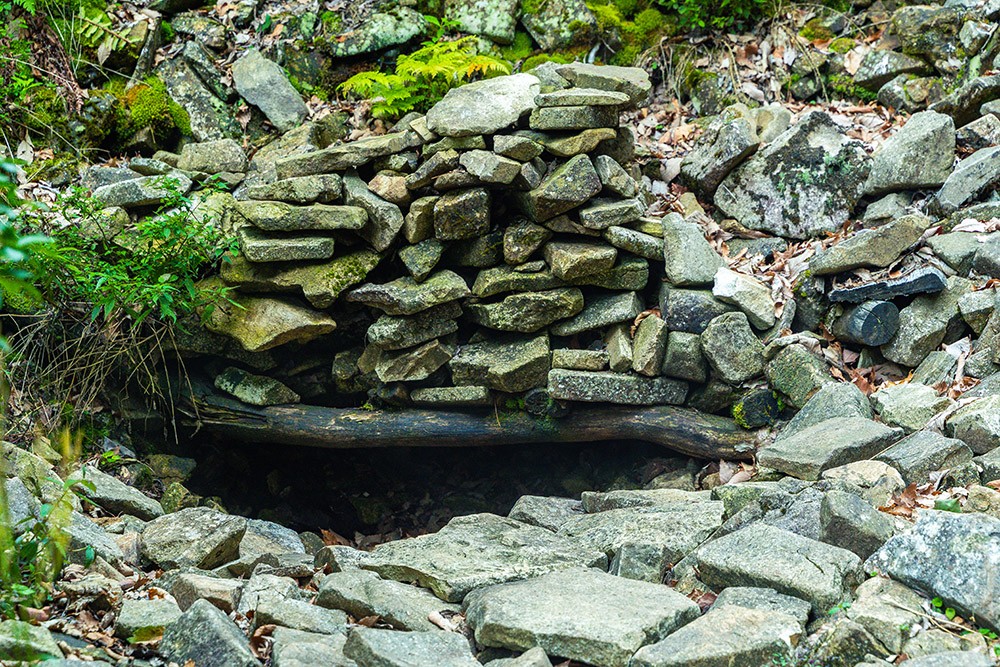 The closer you get to the end of Course 3, the more you will be enveloped from head to toe by cold air. Even when the outdoor temperature exceeds a scorching 30 degrees Celsius, the ice valley remains rather chilly. It is only after you pass the final uphill section that you will arrive at the ice valley. Once there, visitors will be shocked by the frigid air that literally bursts forth from between the rocks of various sizes. There are also logs placed next to the ice valley’s air/ventilation holes: no doubt, a suggestion to all who pass by to sit for a while and enjoy the cold air.