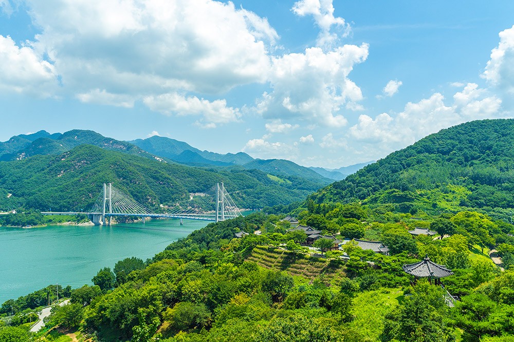 Jecheon—in particular, the area around the ice valley—is also full of beautiful scenery created by Chungju Dam. The first place to go is the summit of Bibongsan Mountain, which stands in the center of Chungjuho Lake. Thankfully, one does not need to hike: the trip from the base (Multaeri Station) to the summit via Cheongpung Cable Car takes no longer than 10 minutes. From the summit, visitors can see why Jecheon was nicknamed “the home of fresh breezes and a bright moon.”