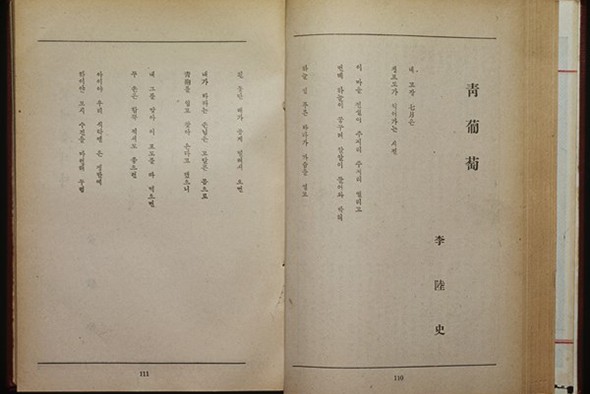 Yi Yooksa was a “resistance poet” who was active in the independence movement during the Japanese colonial period. Yi wrote “Green Grapes” after he was released from Seodaemun Prison. After his death, his hometown (Andong, Gyeongsangbuk-do) installed a memorial stone inscribed with the poem in the poet’s memory. Just like green grapes, which ripen under the scorching summer sun, Yi’s spirit of resistance bore fruit that will be remembered by generations to come.