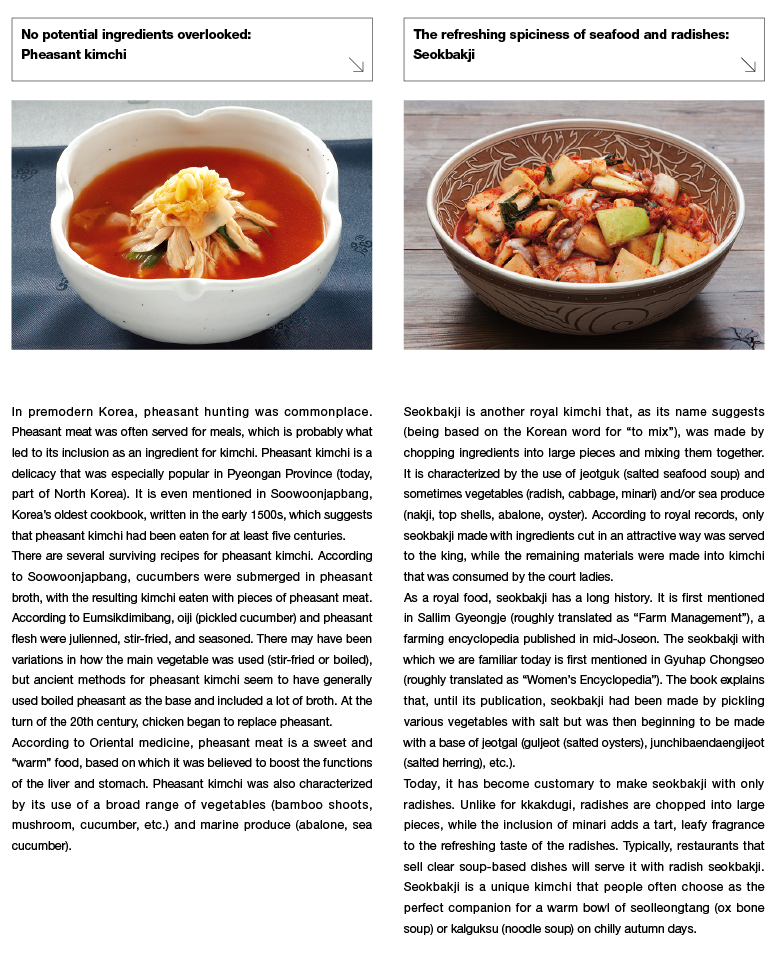 How much do you actually know about kimchi? Kimchi is made out of not only cabbages or radishes but also seafood, meat, or even grapes or tomatoes. For Koreans, most of whom own a dedicated kimchi refrigerator, kimchi is one of the most important elements of their culinary culture. The following three types of kimchi are traditional delicacies that will be unfamiliar even to the most ardent kimchi enthusiasts.