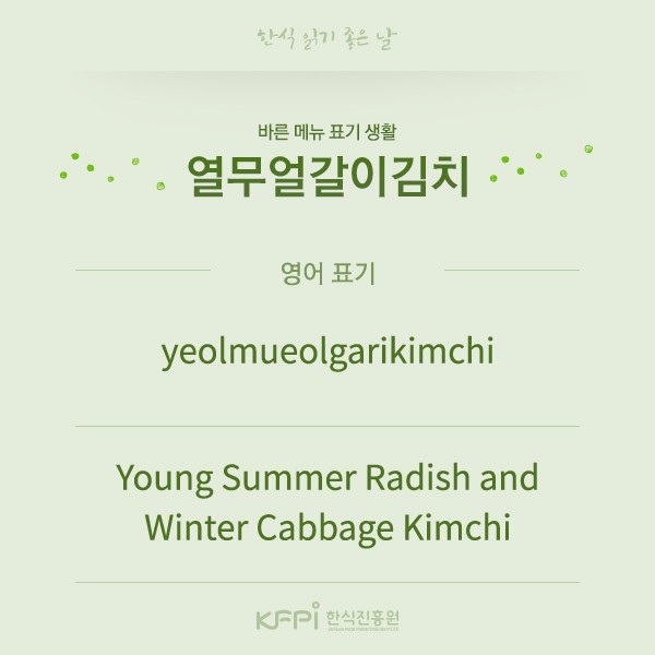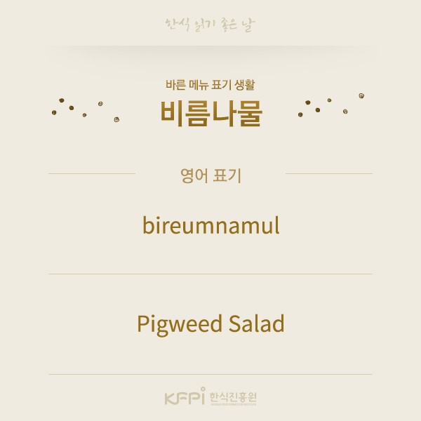 한식메뉴 외국어 표기법