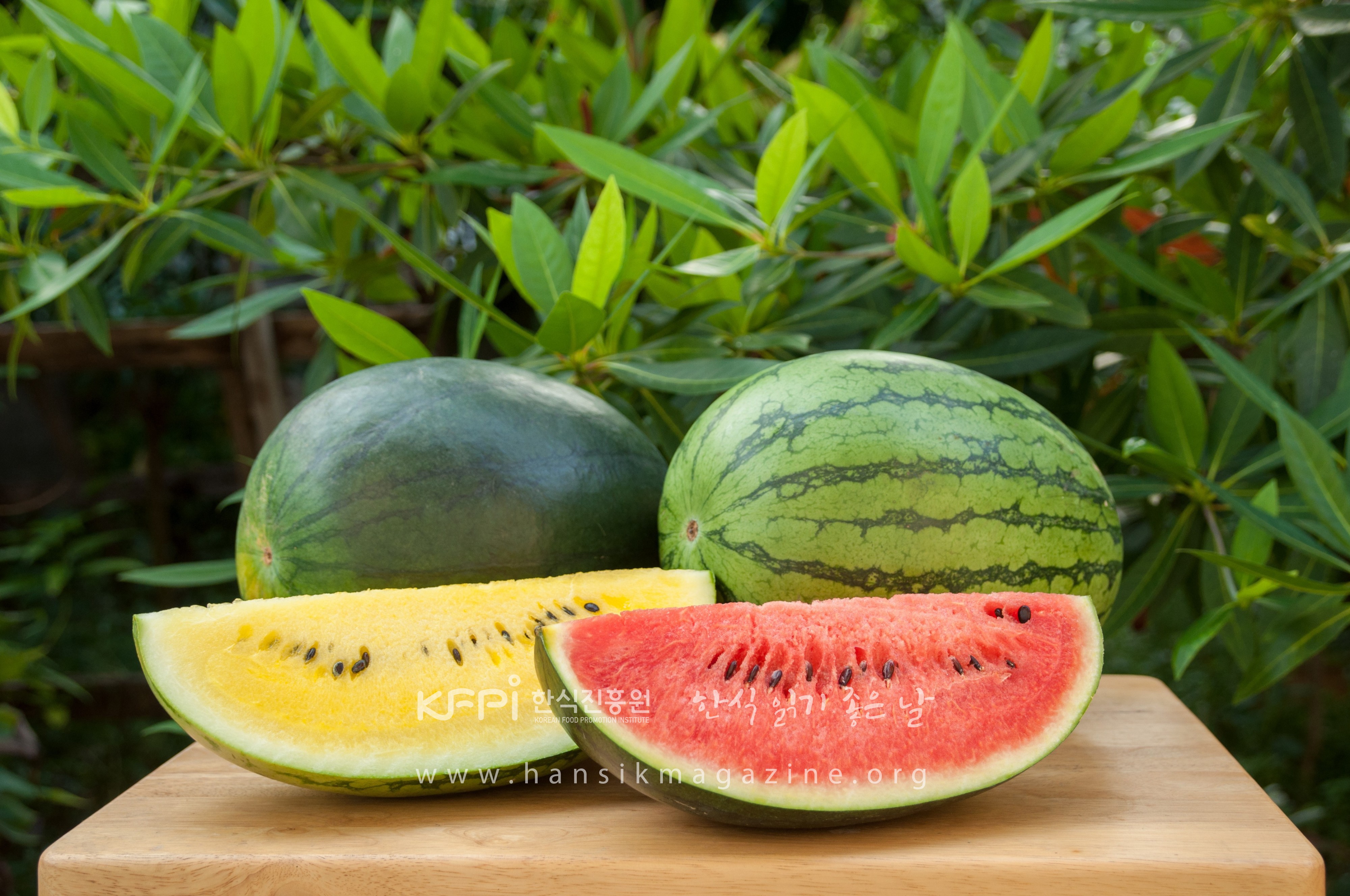수박은 큰 것이 비쌌다. 한 통에 10kg 이상 나가야 시장에서 수박 대접을 받았다. 수박은 꼭지가 붙어 있는 것이 싱싱하고 좋은 것이라 여겼다. 시대가 변함에 따라 수박도 변했다. 큰 수박은 푸대접 받기 시작했다. 식구가 적어지면서 큰 것보다는 작은 것을, 반 통, 1/4통 등으로 잘라서 팔기 시작했다. 최근에는 자르는 것도 모자라 아예 작게 키우기 시작했다. 작기만 한 것이 아니라 수박 특유의 빨간 속살마저 노란색으로 바꾼 것도 있다.