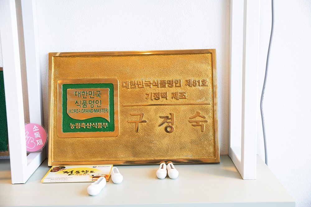 After years of making, without break, over a dozen kinds of rice cake and ppeongtwigi (rice puffs), squeezing oil from seeds and grinding peppers into powder, I was exhausted. One day, I injured my right hand while using the pepper mill. It made me realize that I needed to narrow my focus. We changed to Sapyeong Gijeongtteok in 2005, as you said, but actually began producing only gijeongtteok in 2002. I chose it because I’m confident in my skills. A lot of customers say that they like our products because they remind them of the rice cakes their grandmother made when they were a child.