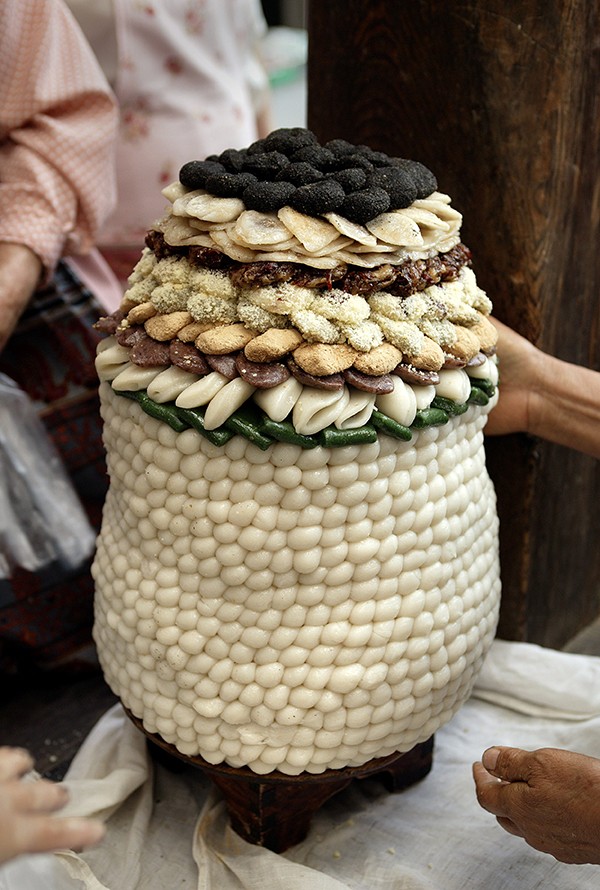 Rice cakes were also, of course, served for every major seasonal division and holiday. The first day of the lunar year is when Koreans believe that they turn one year older, but only after having finished a bowl of tteokguk (sliced rice cake soup) made with garaetteok. On Jeongwol Daeboreum, the day of the year’s first full moon, rice steamed with jujubes, chestnuts, and pine nuts was eaten in hopes of keeping evil spirits away for the rest of the year.